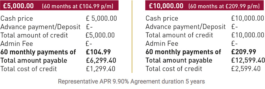 Finance is available to UK residents 18 to 65 year old in full time employment only.