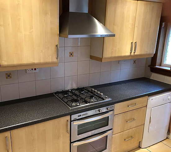 Before during and after of full kitchen renovation in Knightswood, Glasgow.